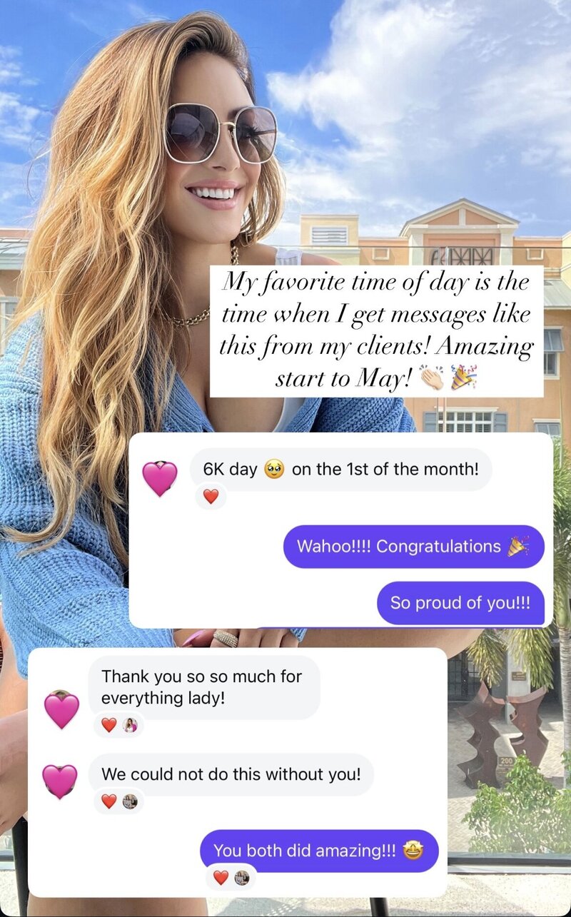 Since working with Jacinta and being a member of her Coaching Community I surpassed my previous annual income in just 6 months! I also grew from $500 months to consistently selling $5k+ in my businesses each month. I've landed brand partnerships, grown my social media and experienced increased income!